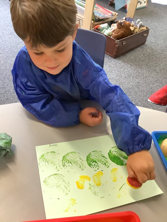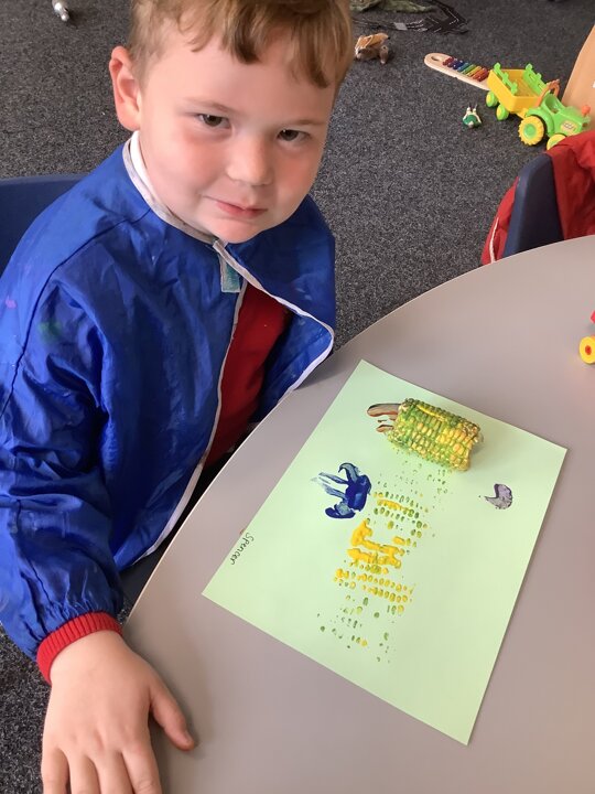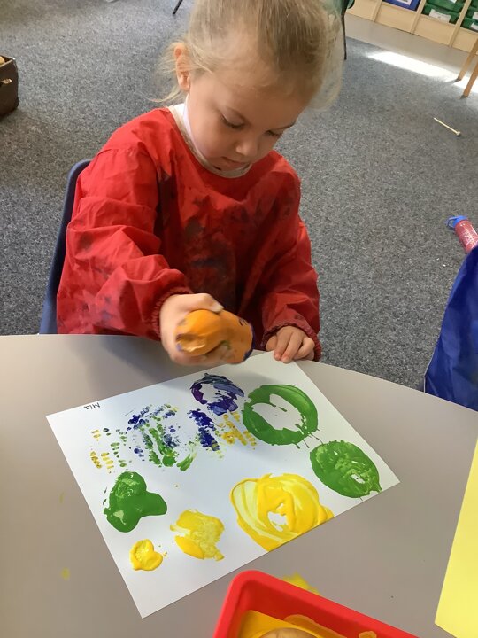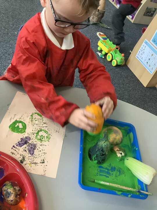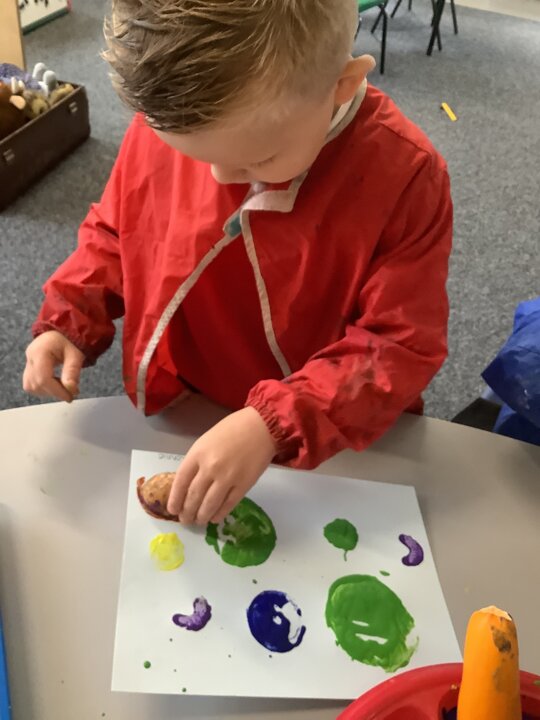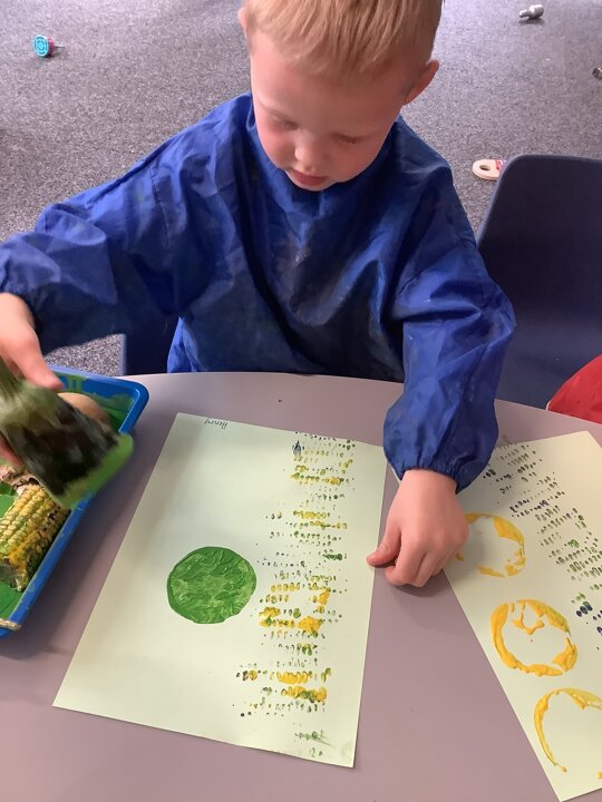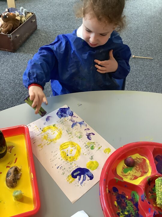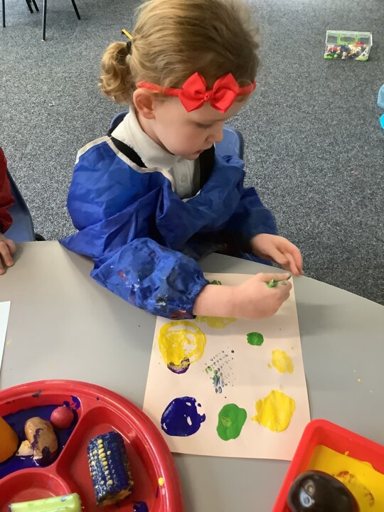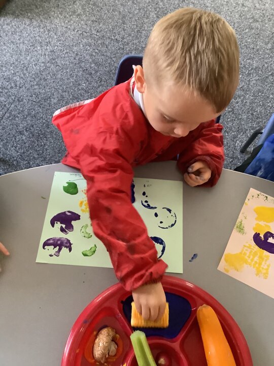 This week we have had fun printing with vegetables. We enjoyed exploring the shapes that different vegetables make. We hope you like our pictures!
