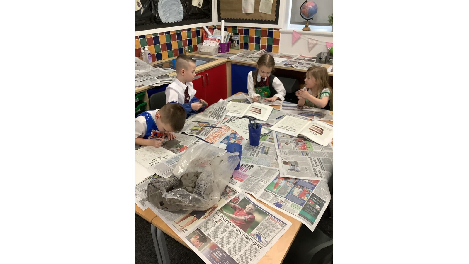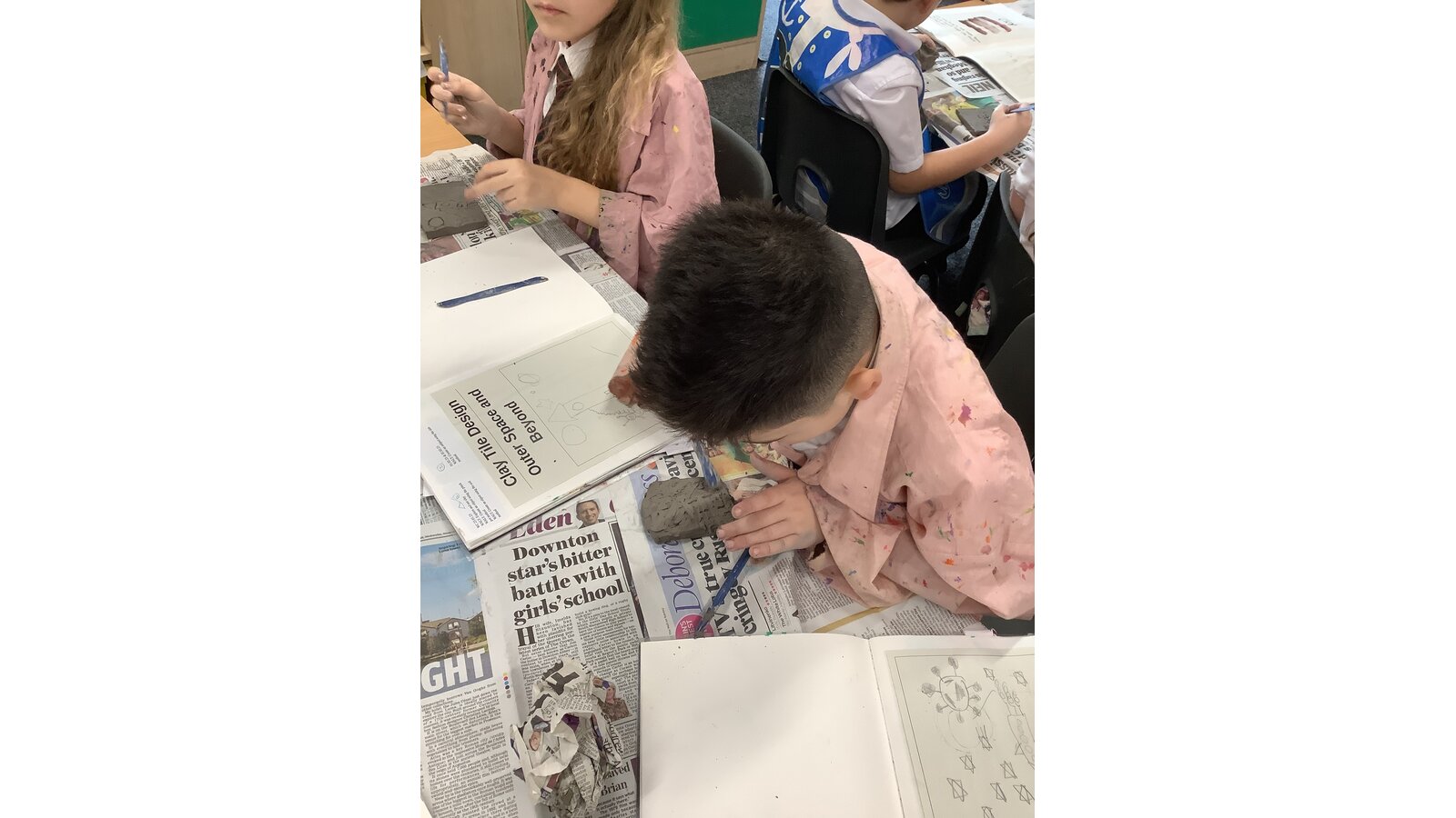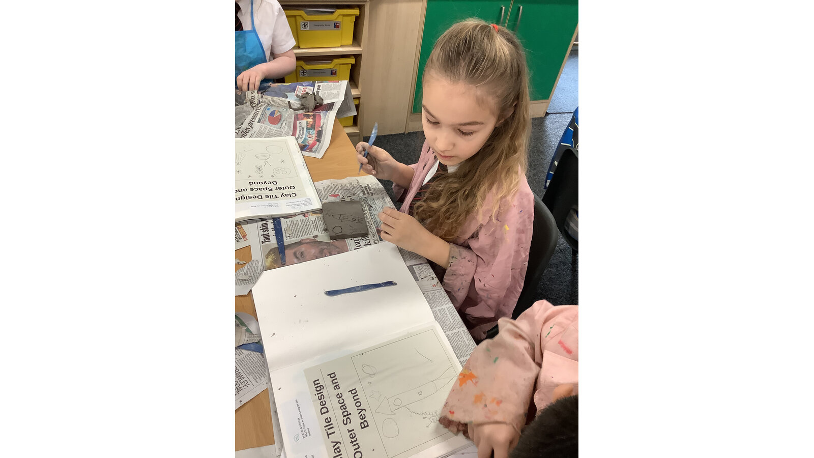 2 February 2023 MrsStretton Class 2 Today in art Class 2 made space themed tiles out of clay using the slab method. Previous Next