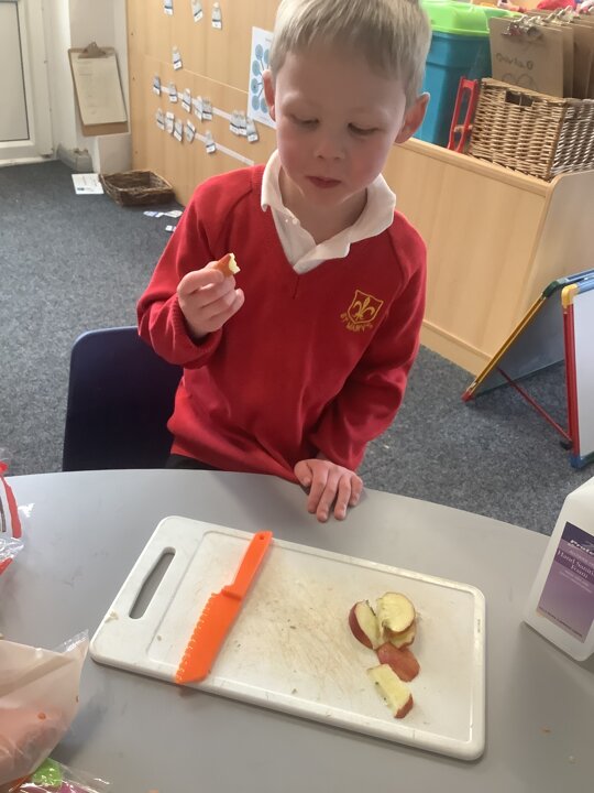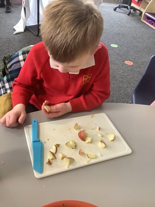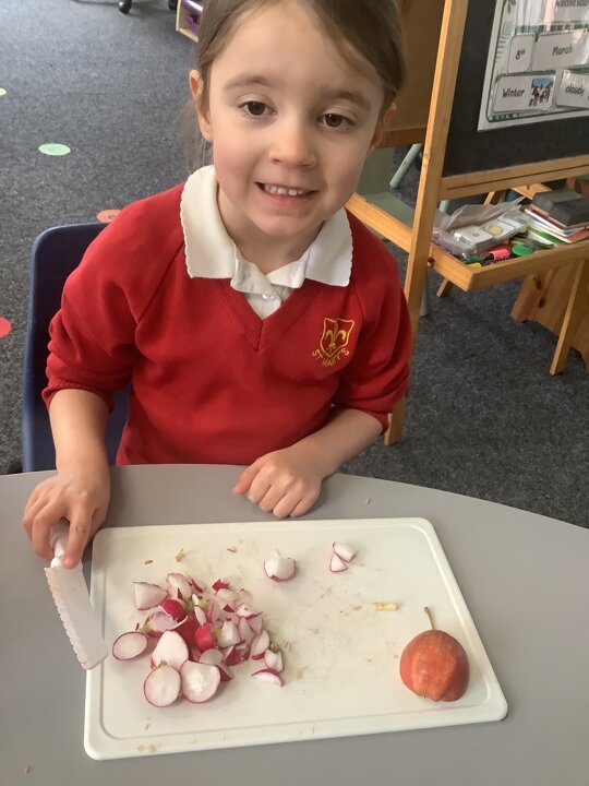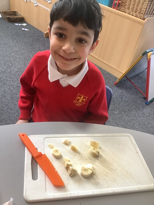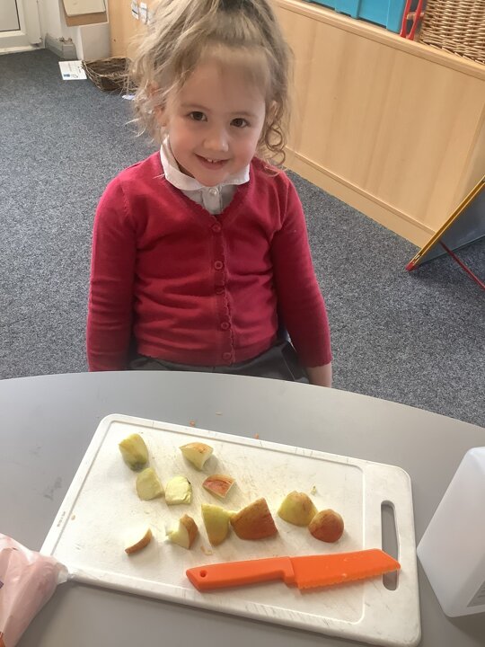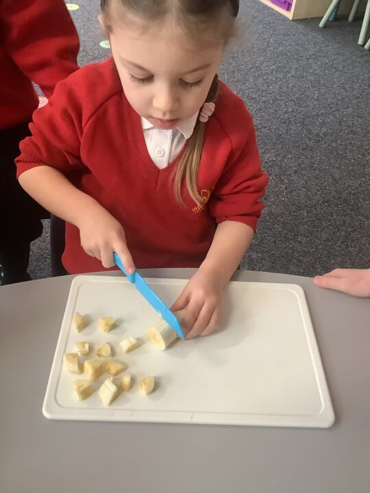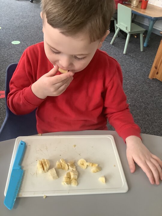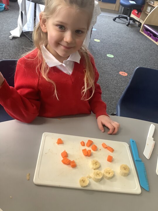 This week we have been learning about different fruits and vegetables. We also practised our safe cutting skills when preparing our own snack. Our teachers were really impressed with how safe and sensible we were!