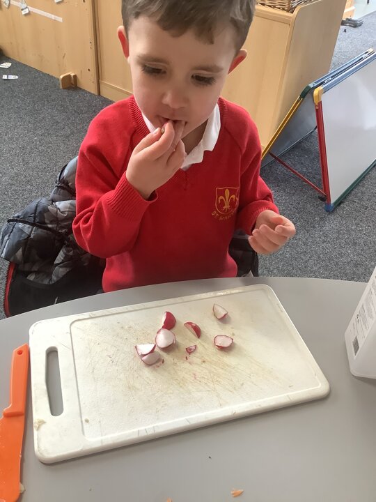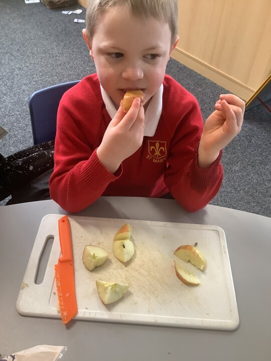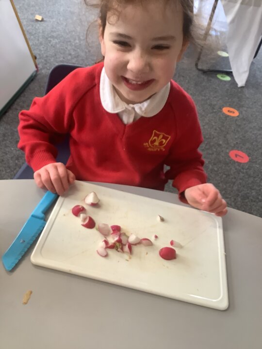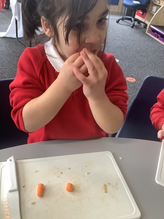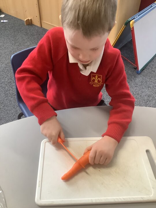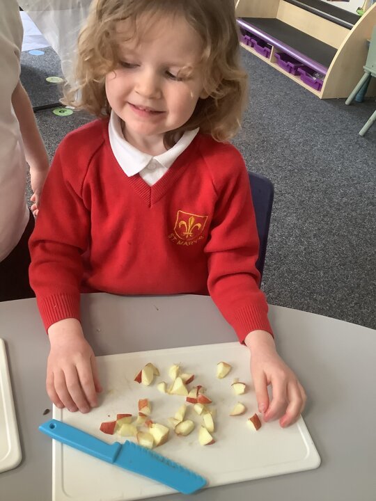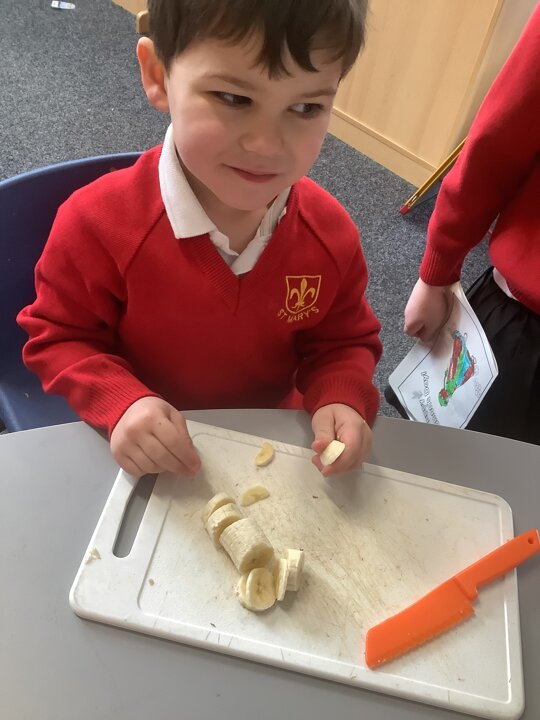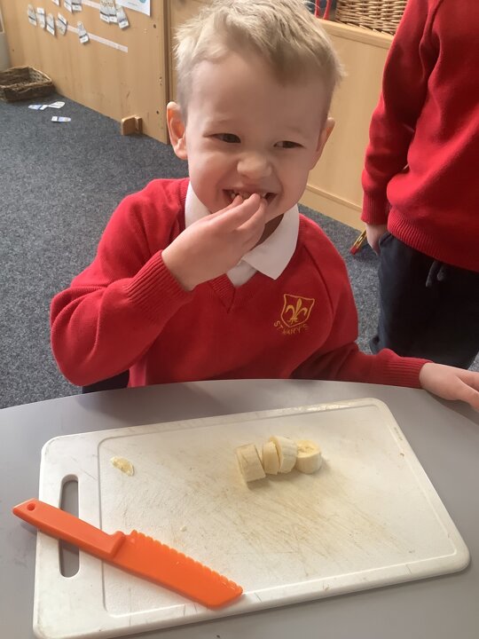 This week we have been learning about different fruits and vegetables. We also practised our safe cutting skills when preparing our own snack. Our teachers were really impressed with how safe and sensible we were!