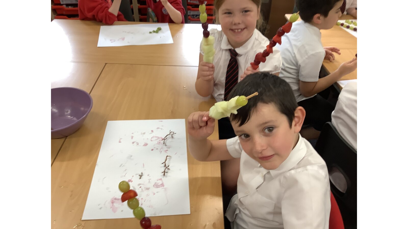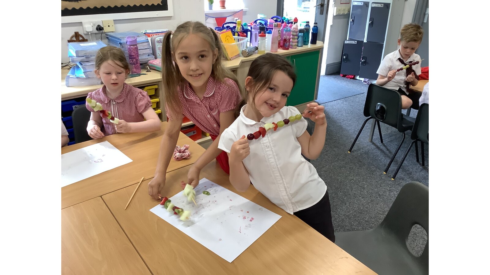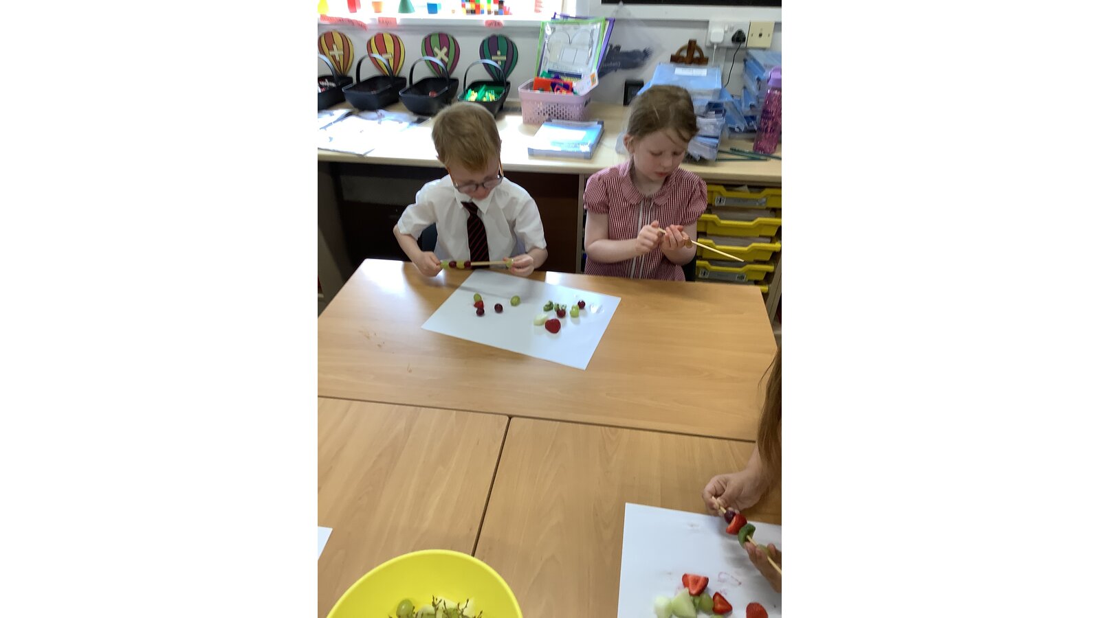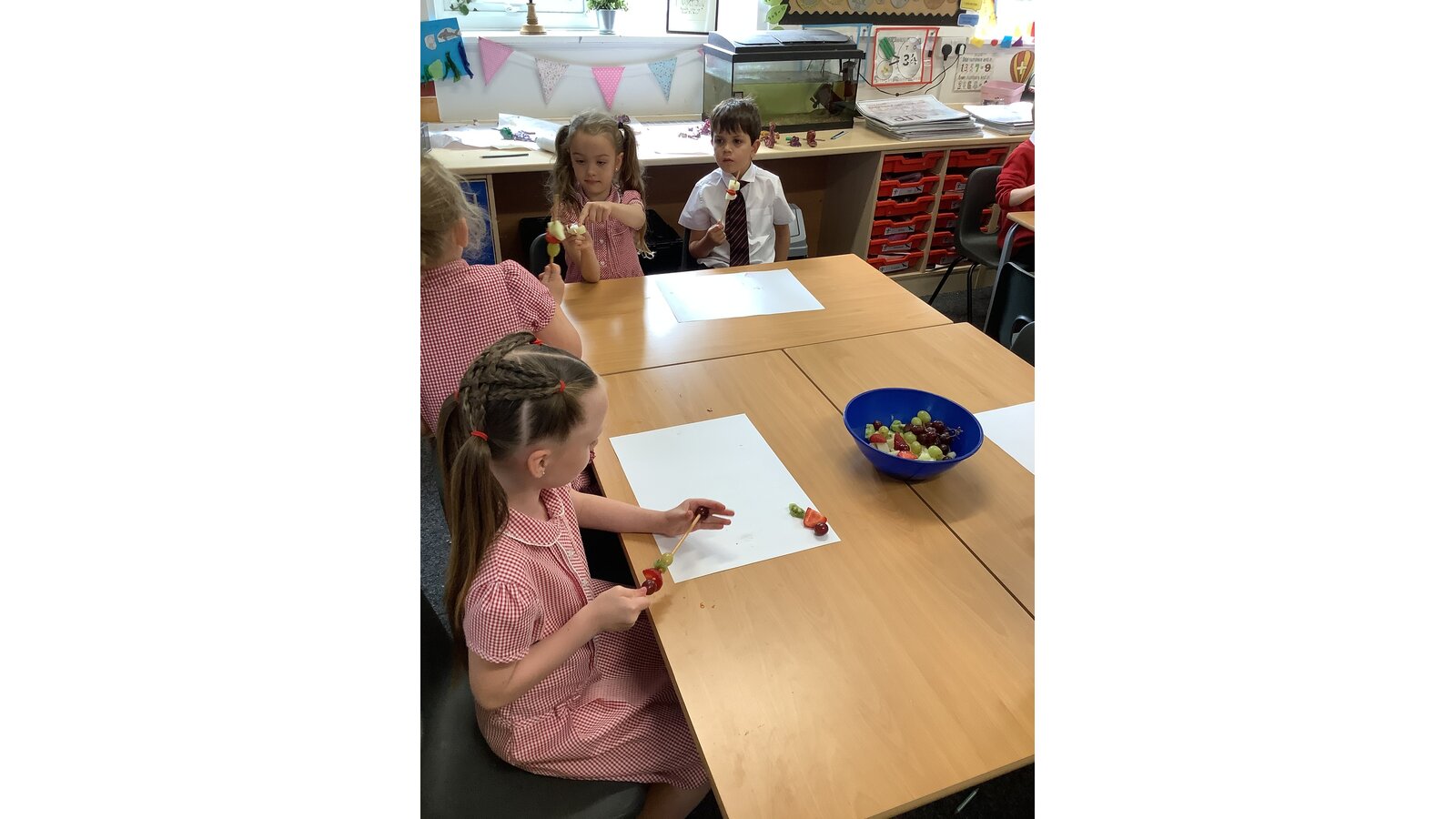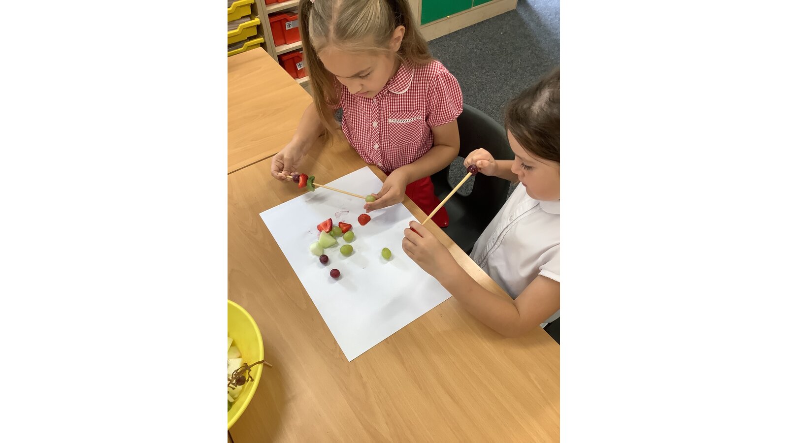 In DT we have been learning all about picnics. Today we designed and made fruit kebabs. We then evaluated our finished products.