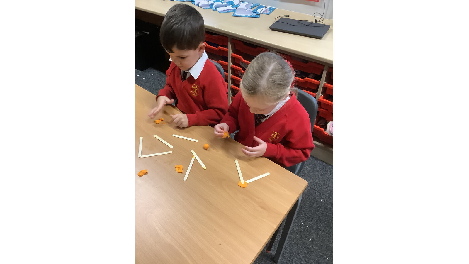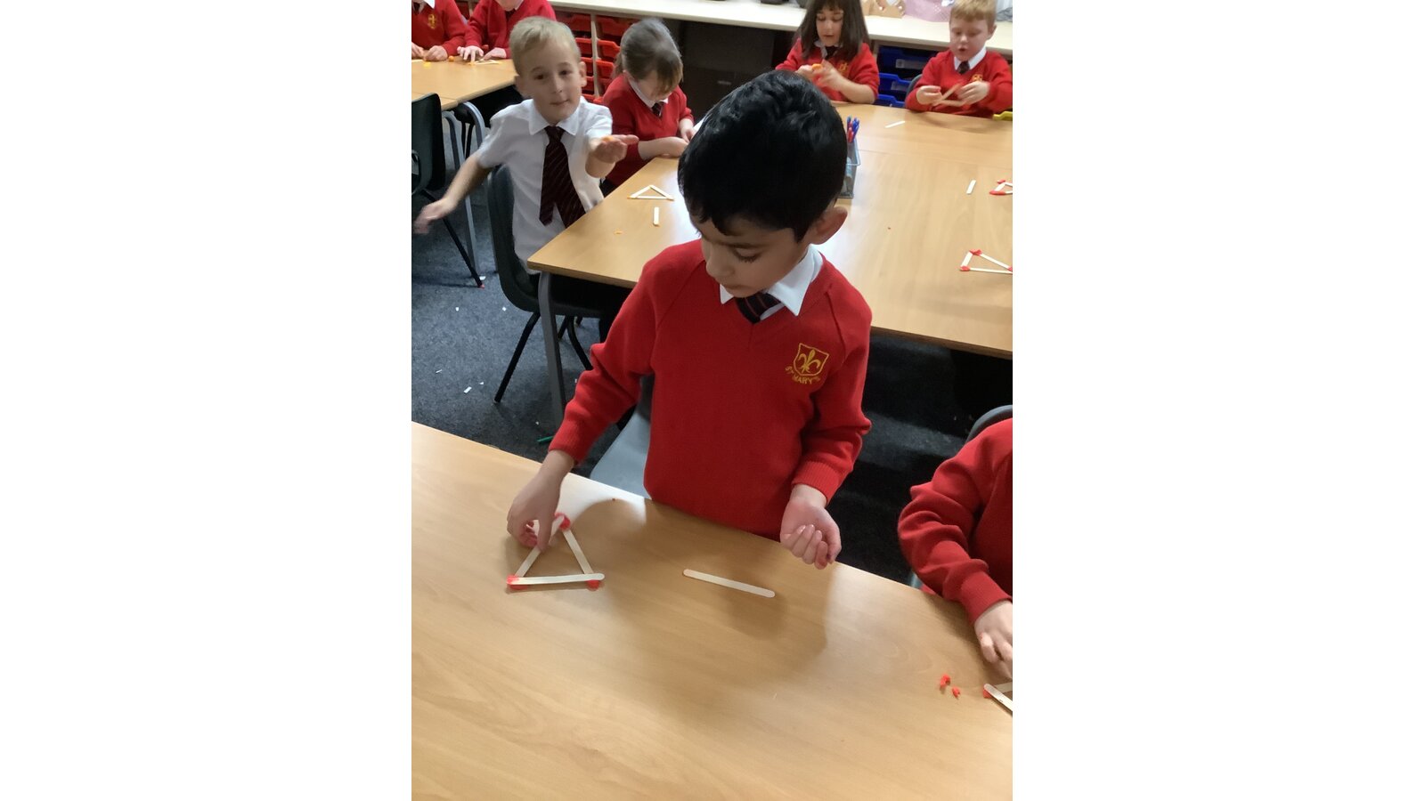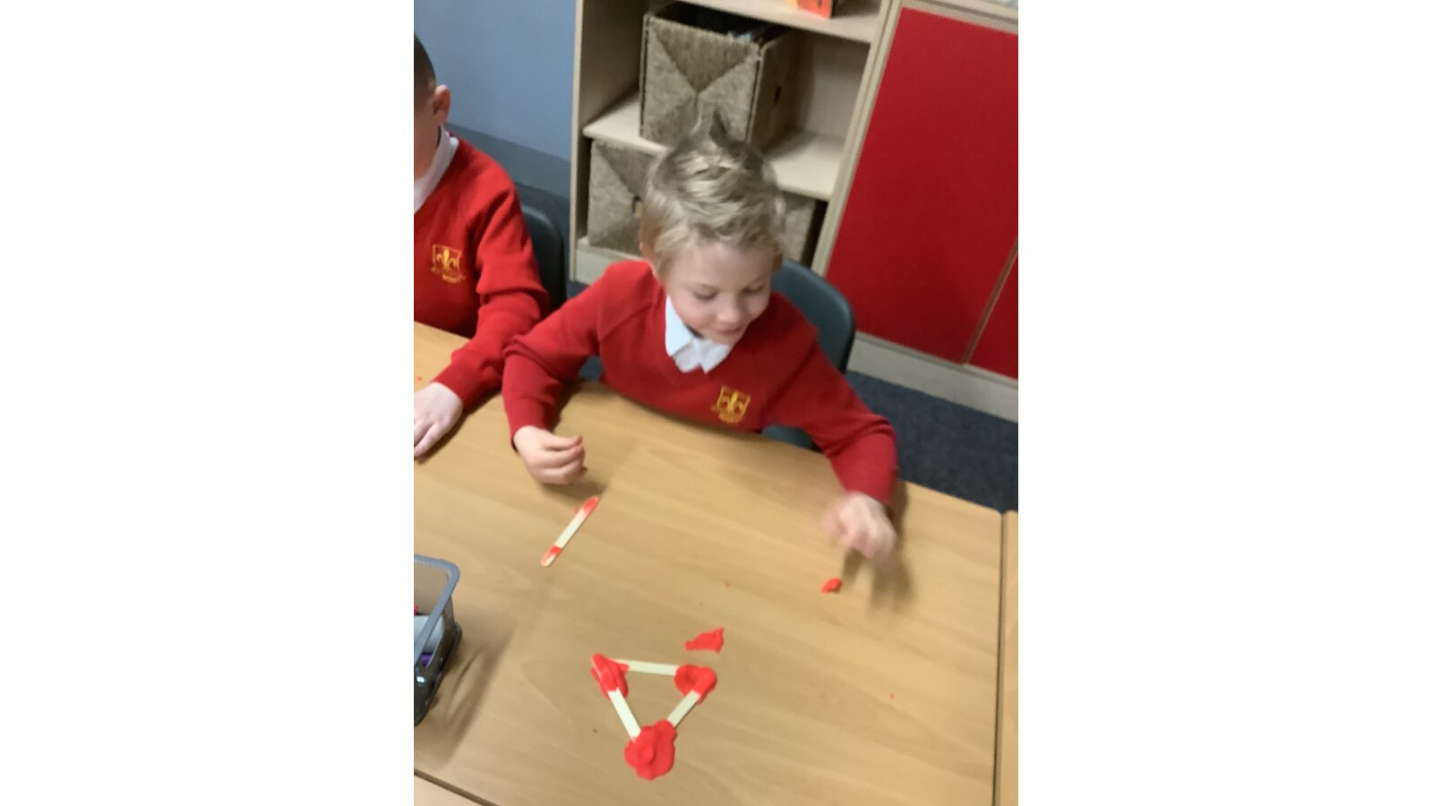 In maths Year 1 have been learning all about shape. Today we made 2D shapes using lollipop sticks and play dough. We talked about the properties of the shapes we had made.