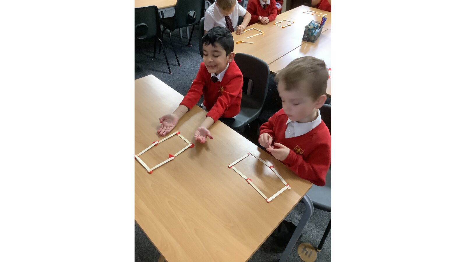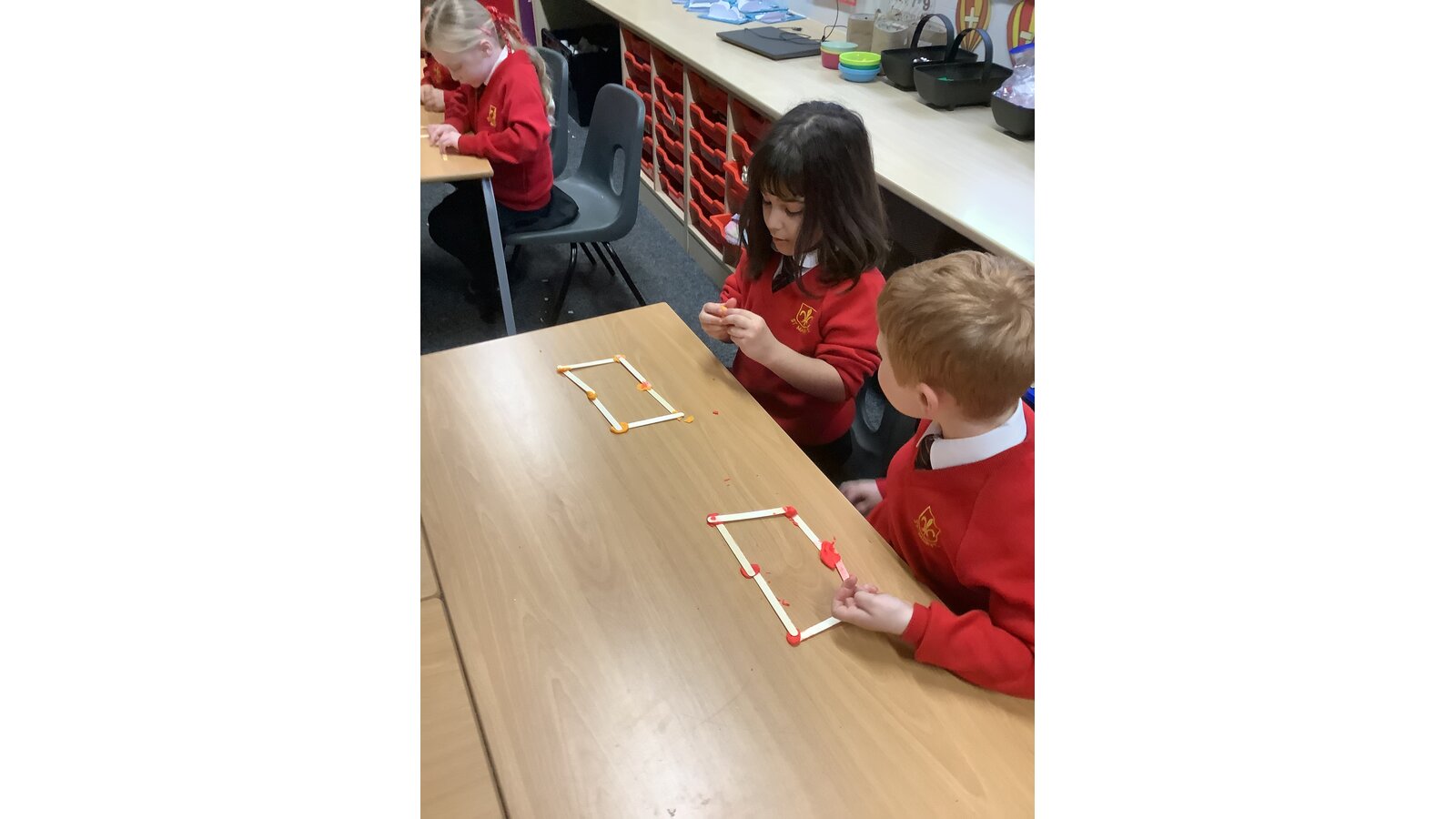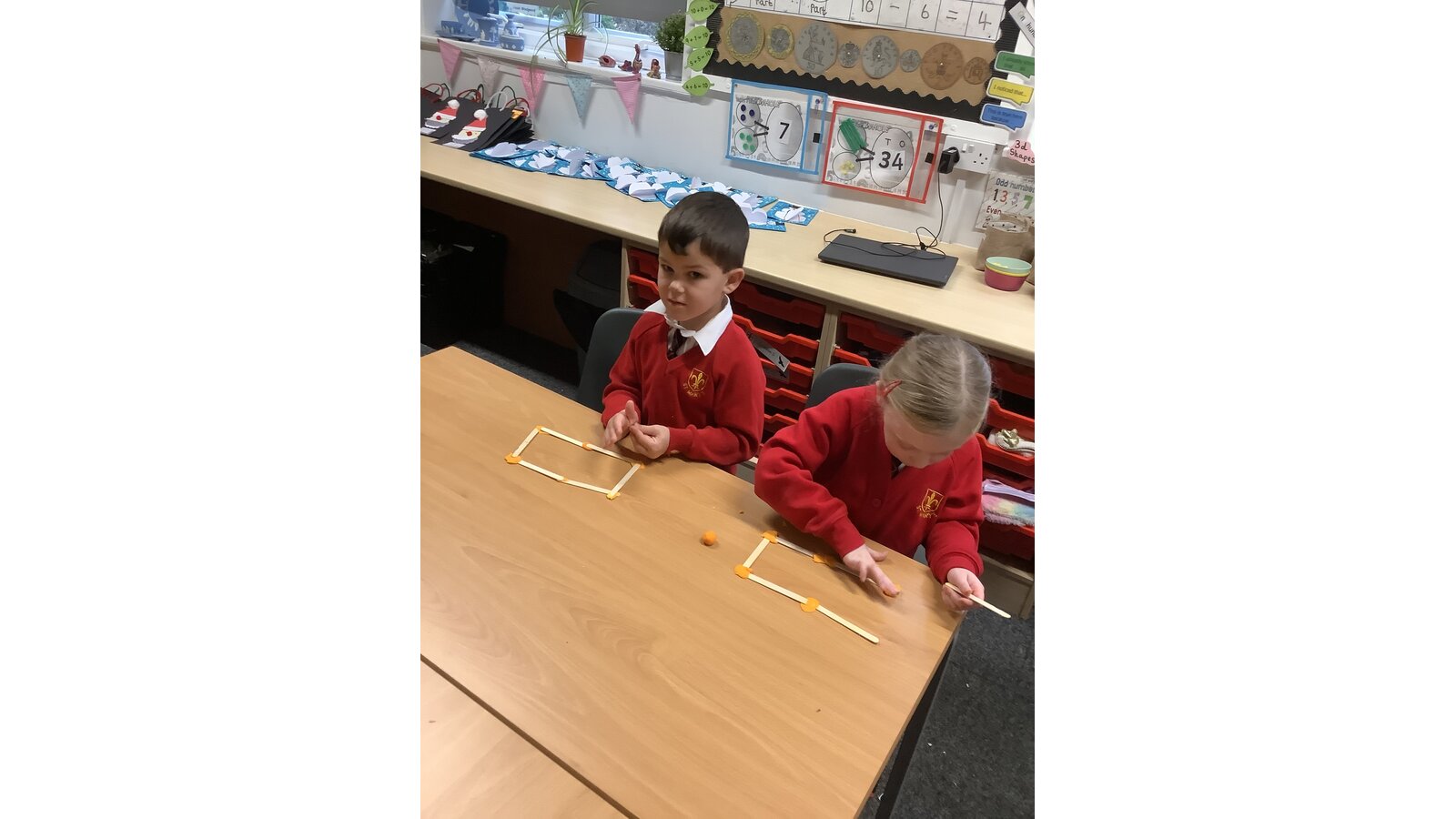In maths Year 1 have been learning all about shape. Today we made 2D shapes using lollipop sticks and play dough. We talked about the properties of the shapes we had made.