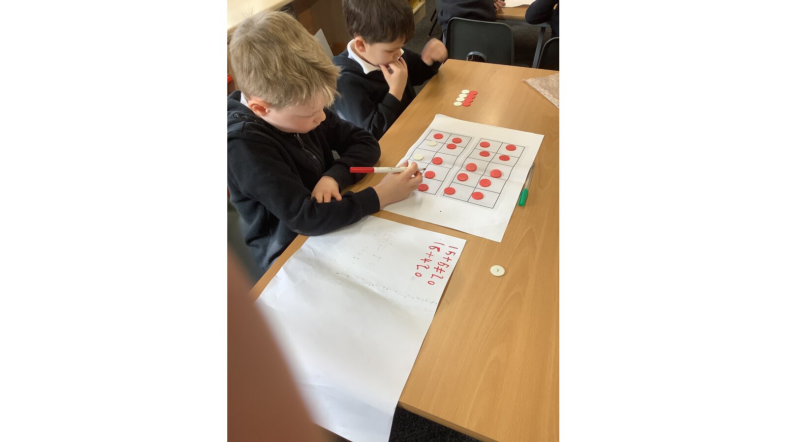 In maths today Year 1 have been using the ten frames to find number bonds to 20. We used our prior knowledge of number bonds to 10 to help us.