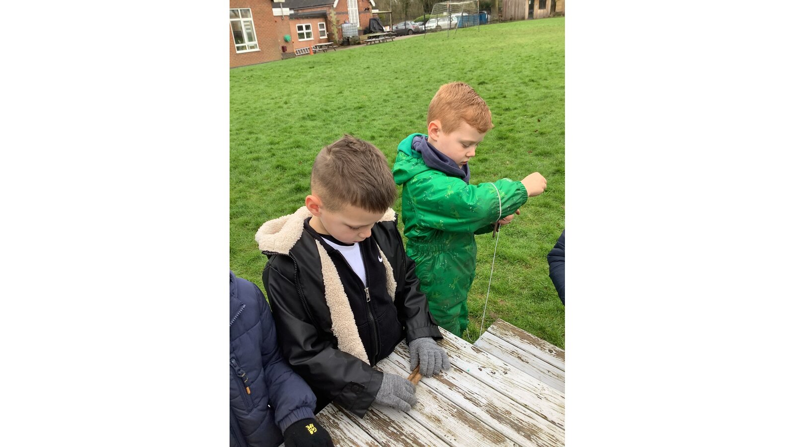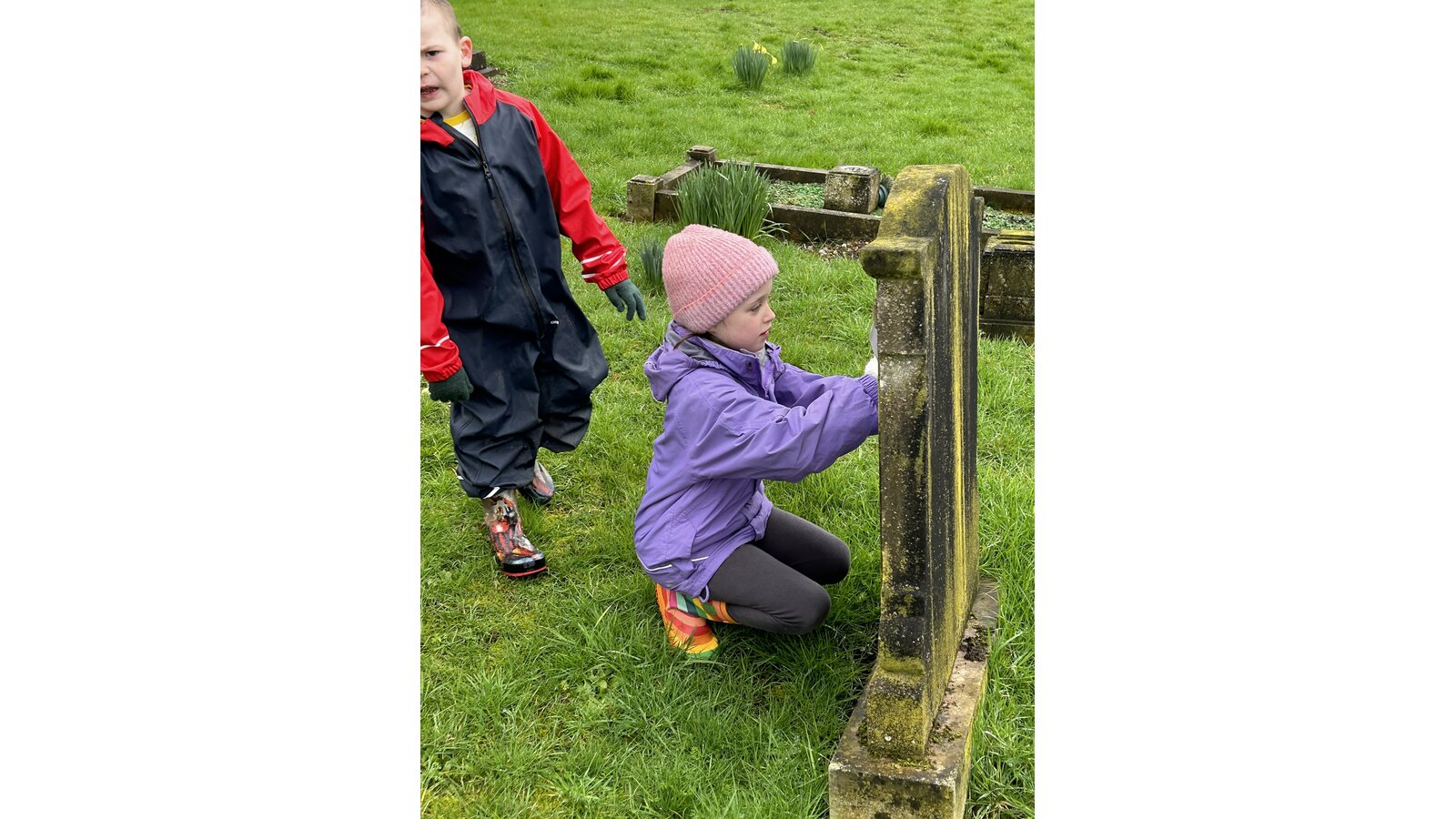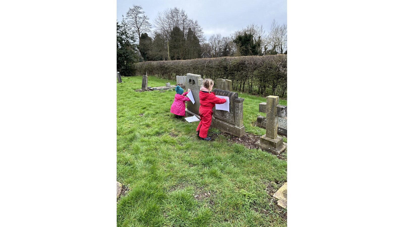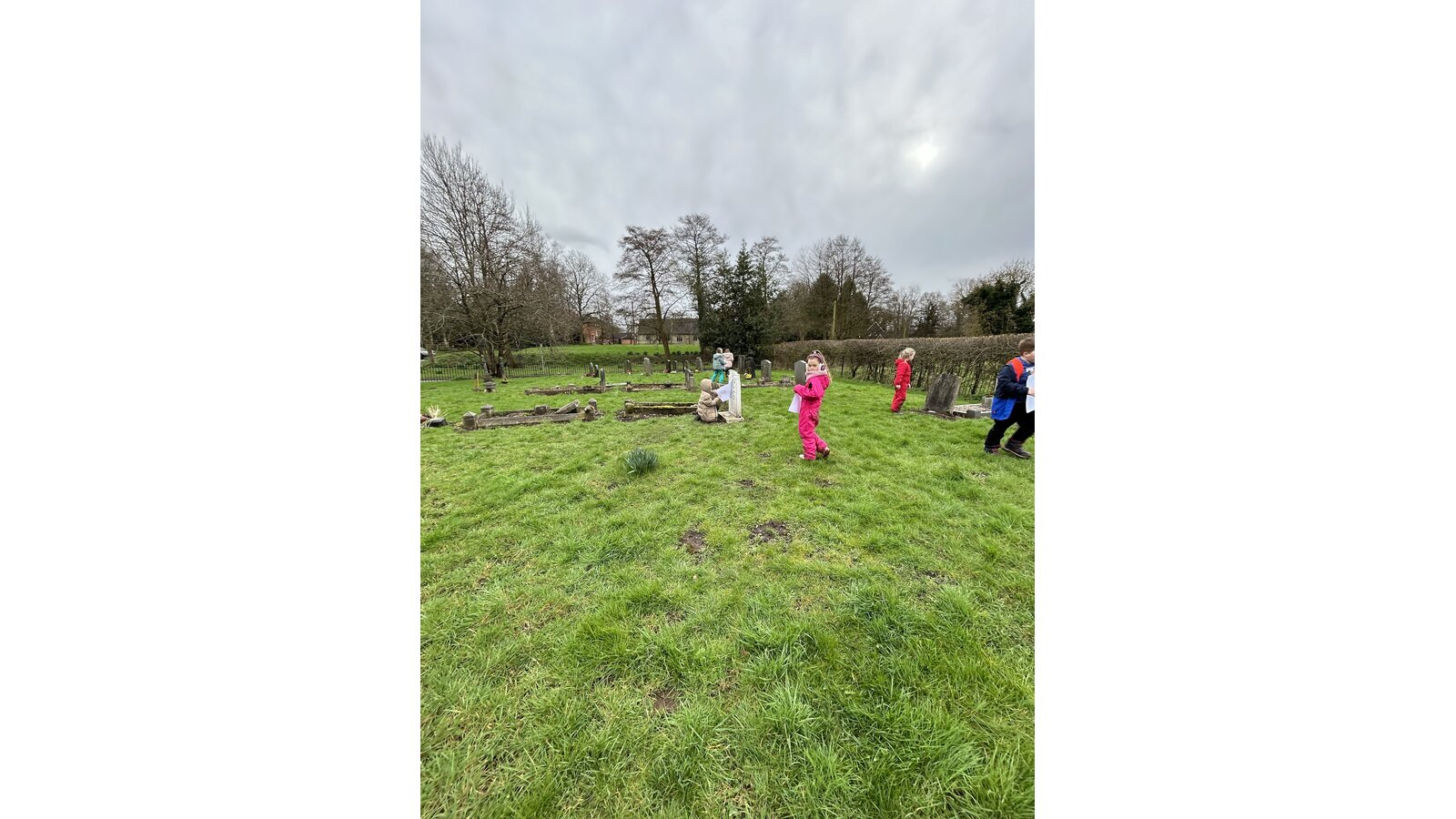 On Thursday Class 2 invited their friends from Richard Crosse over for an outdoor learning day. We made potions, created leaf art, did rubbings in the churchyard and we even went to the park! We stayed outside all day even for lunch!