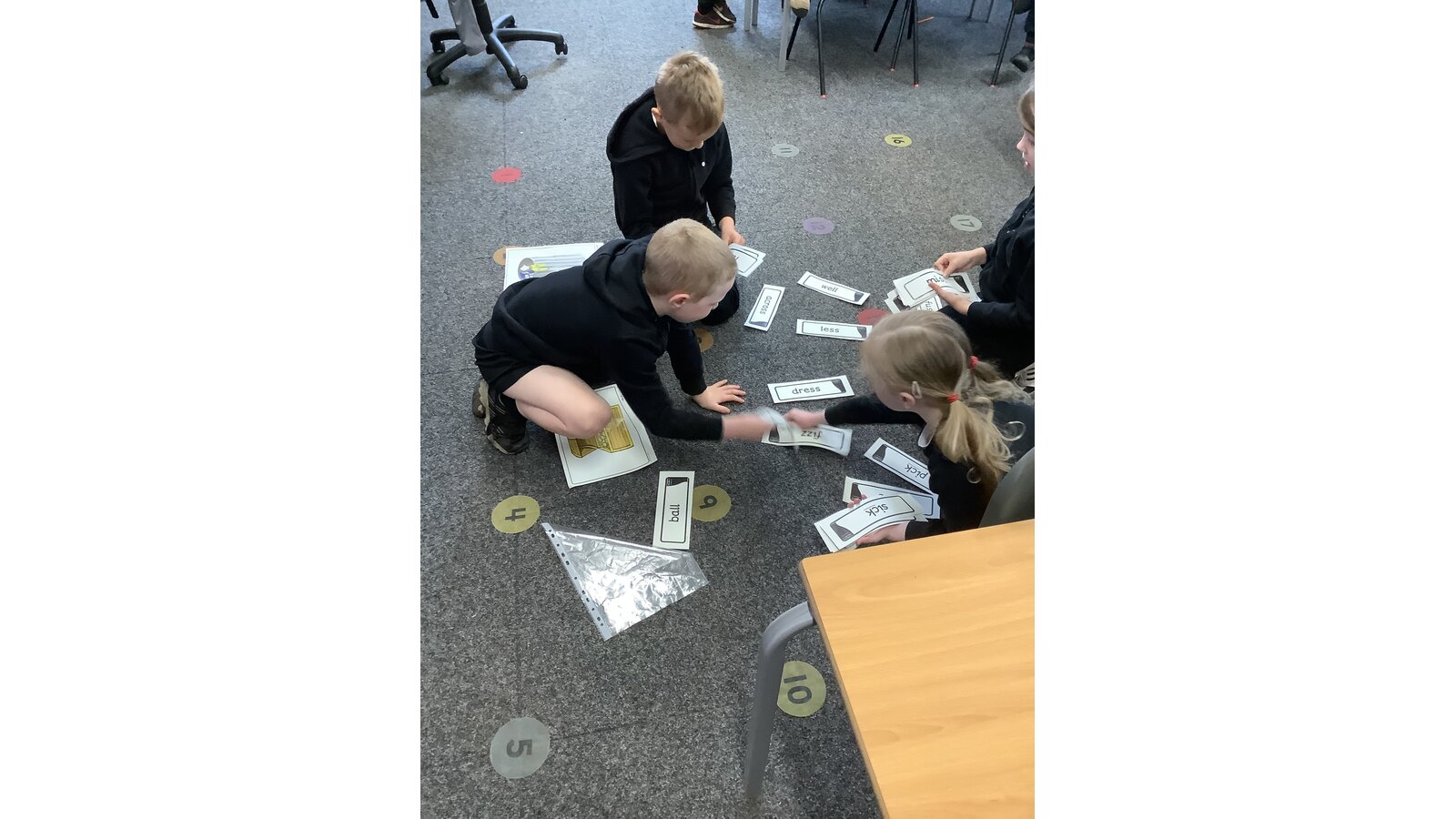 Today in phonics our Year 1 children have been sorting black cat words into trash or treasure. They worked as a team and practiced reading the words.