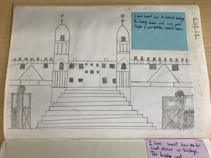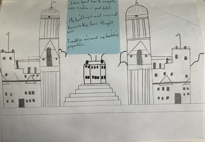 The children have had chance to draw some of the buildings for themselves, I think that their work is stunning. Well done Class 4!