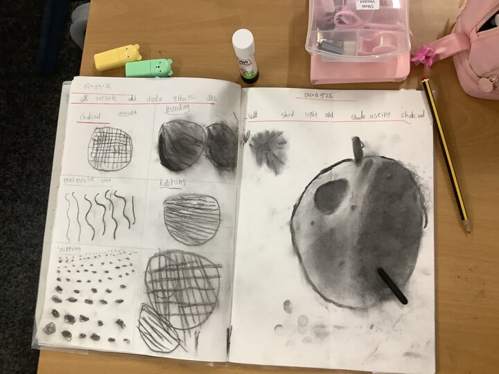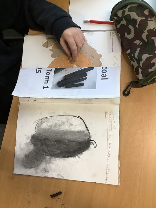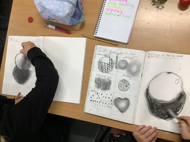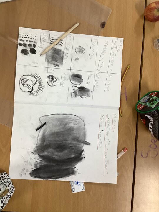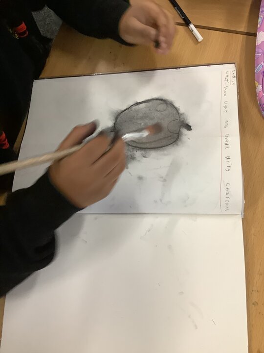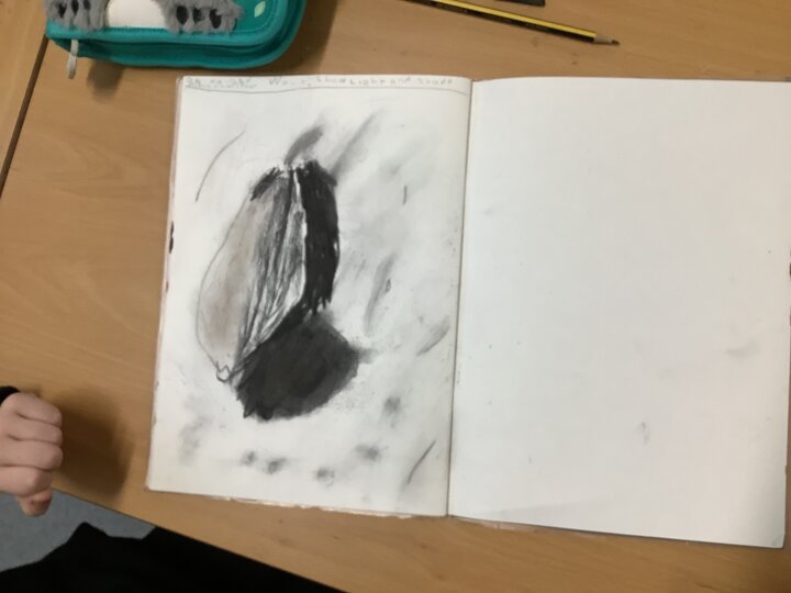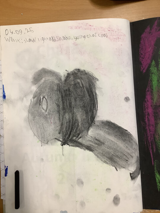 5 September 2025 Miss Lukat Class 3 This week, we have been exploring charcoal. We have been experimenting with different techniques to create light and shadow.