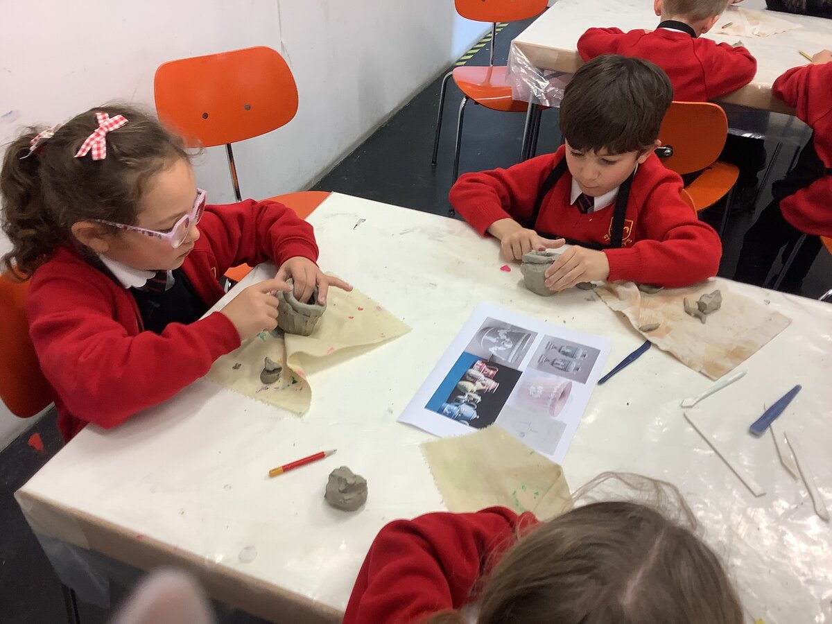 Class 3 had a fantastic day today at Walsall Art Gallery. We made pottery, sculpted models out of plasticine and looked and talked about a variety of different pieces of art.