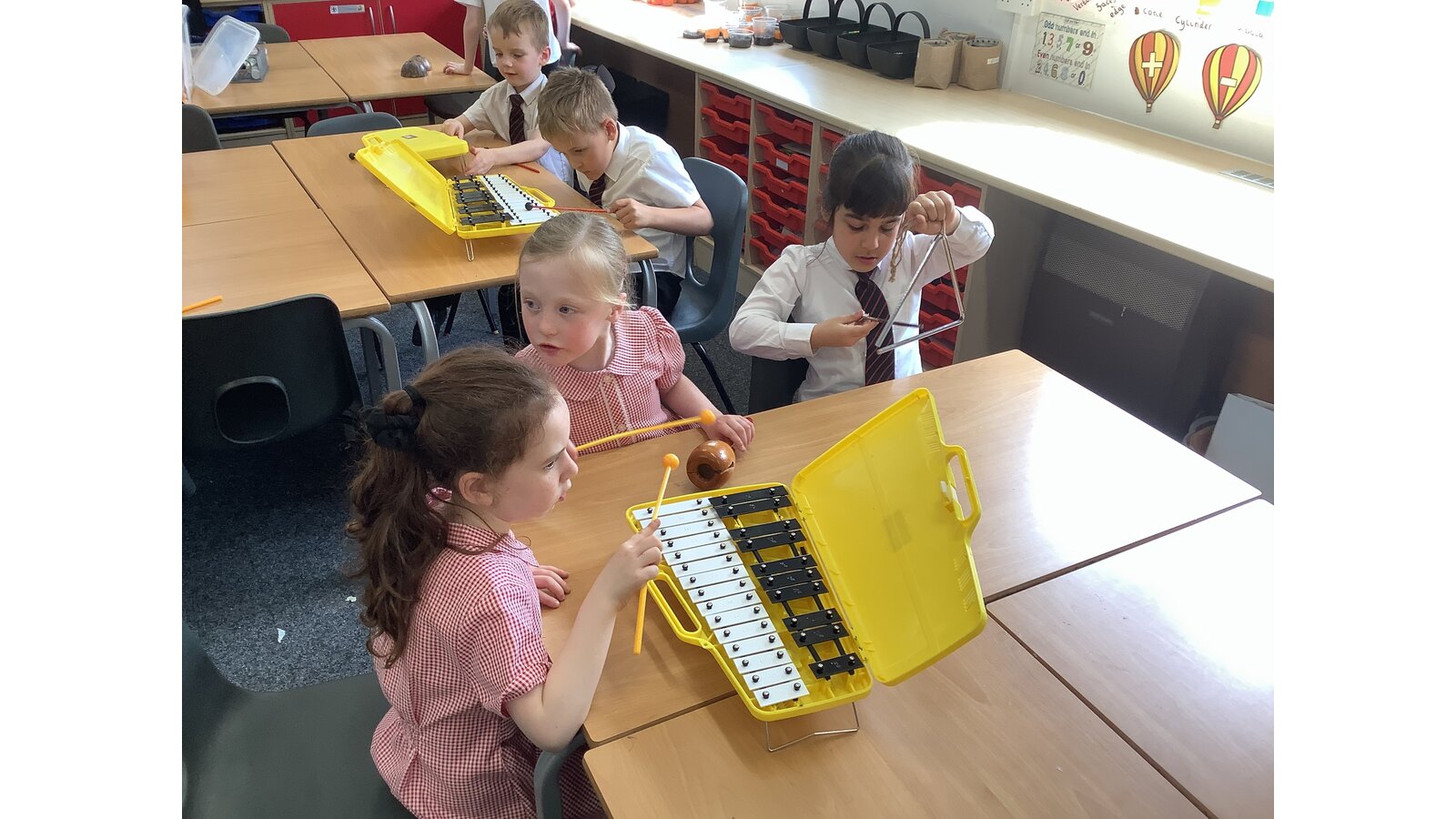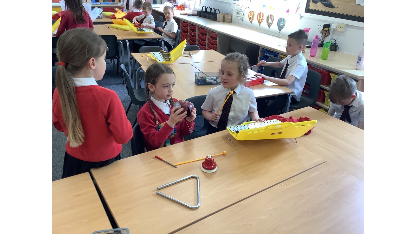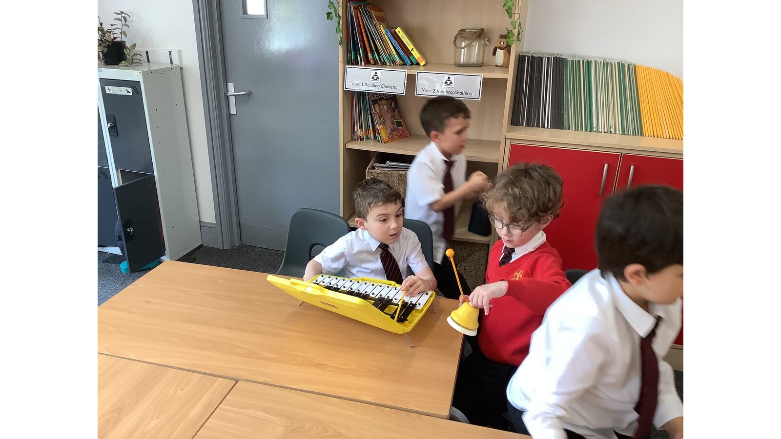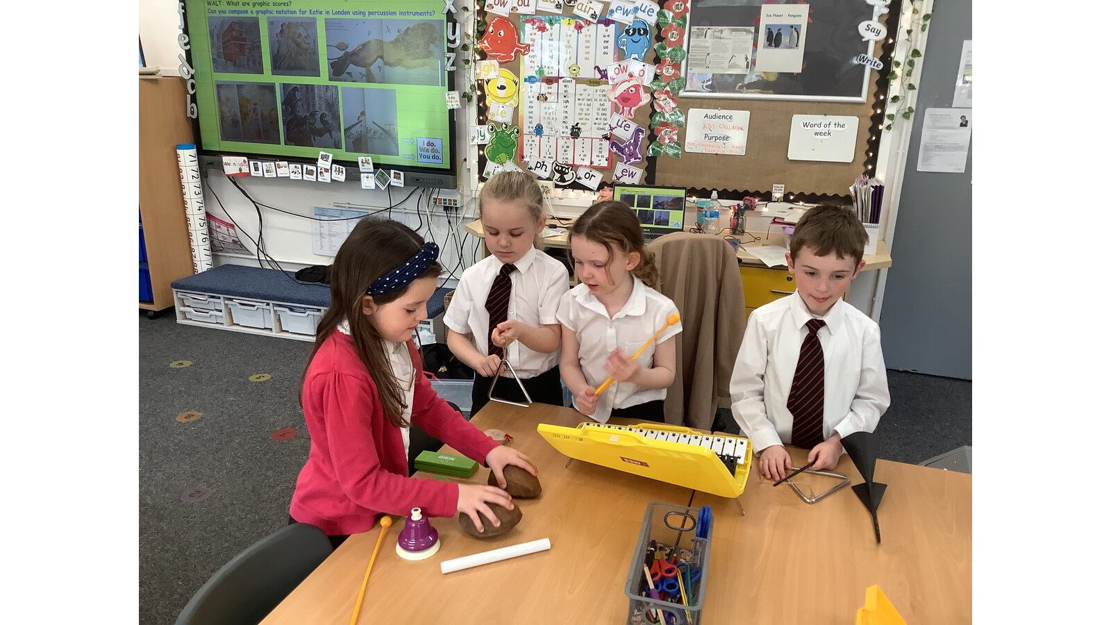 In music today we used the percussion instruments to compos a graphic notation for one of the stories we have covered this year ‘Katie in London’.