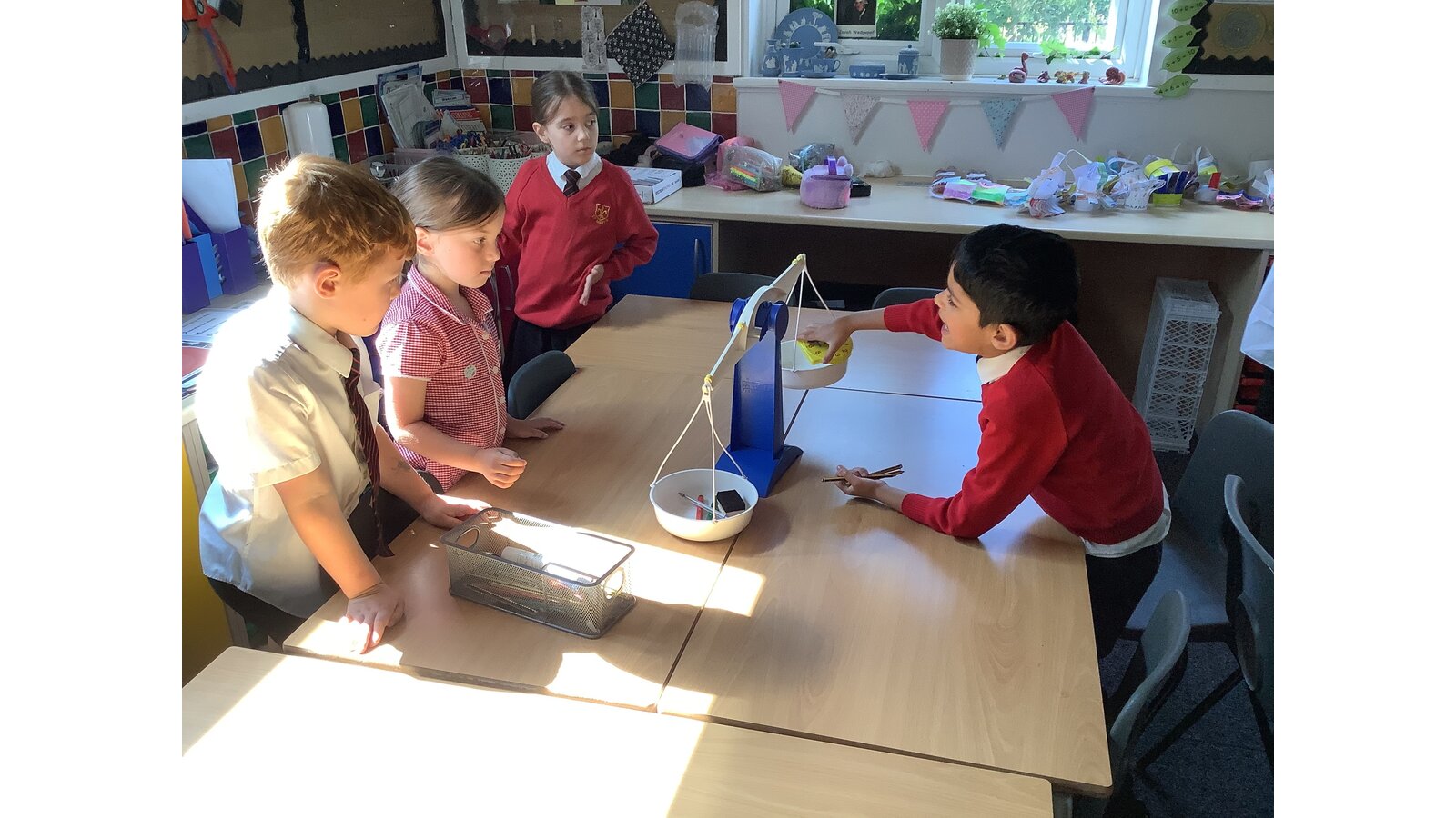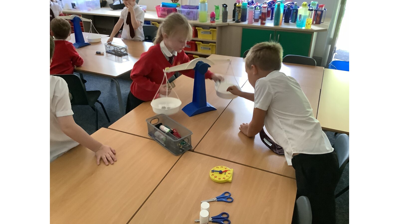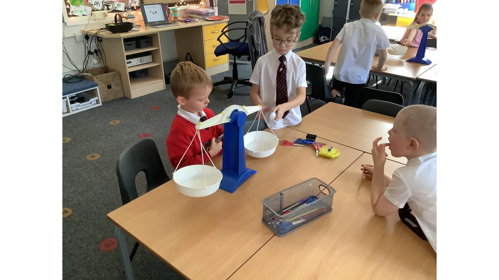 In maths today Year 1 have been using yer balance scales to compare the mass of classroom objects and work out mass using cubes. We used language such as heavier, lighter and balanced.