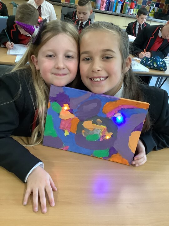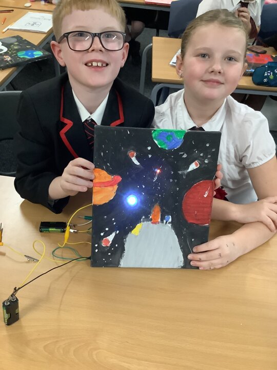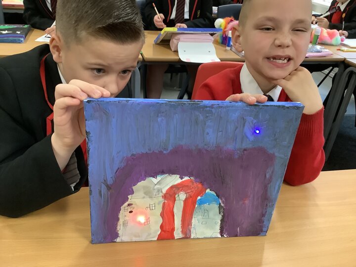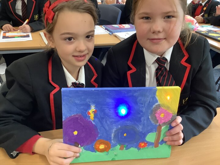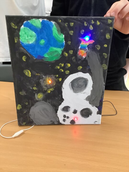 In DT, we have made light-up canvases. We learnt how to make circuits with switches, use LEDs and also did lots of problem solving if our circuits did not light up.