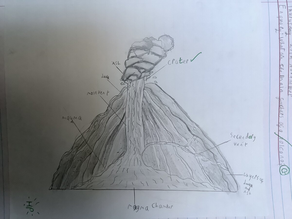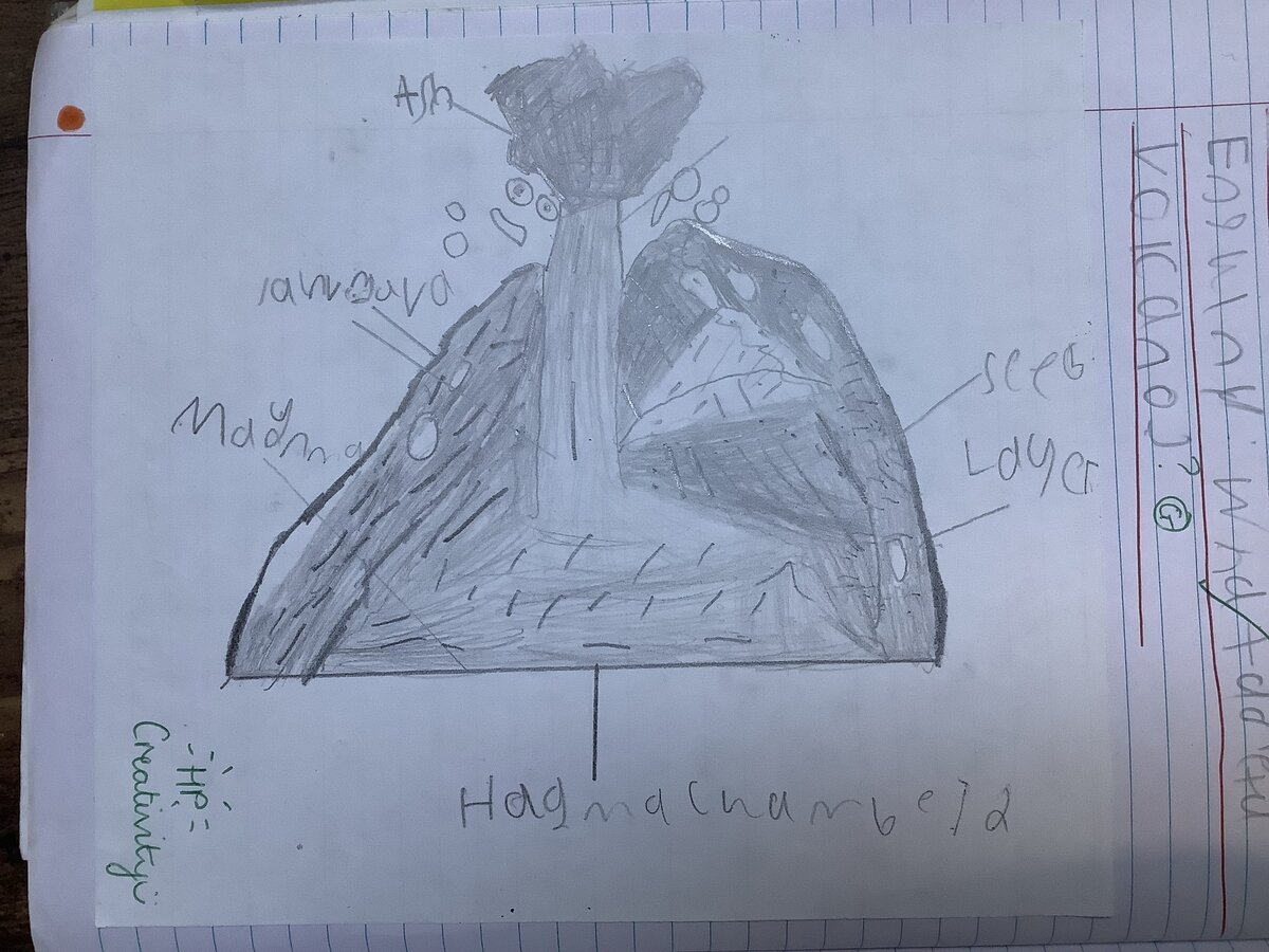 In geography, we have been learning about mountains and volcanoes. This week, we have learnt about the features of volcanoes and sketched pictures to show our understanding.